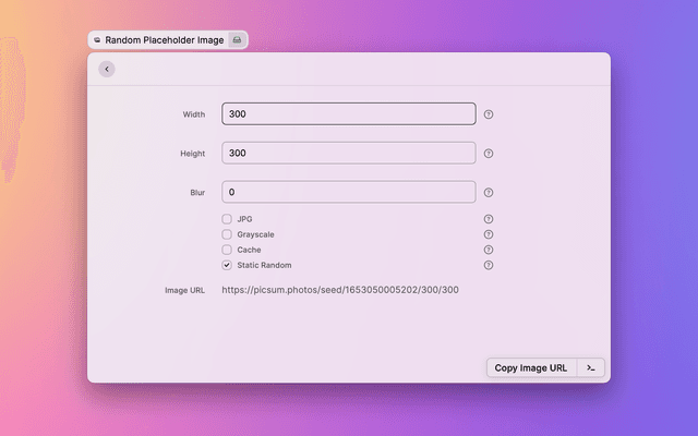If you find an image you like in the Search Placeholder Image command, you can use the Set Desktop Wallpaper action to set it as your desktop wallpaper.