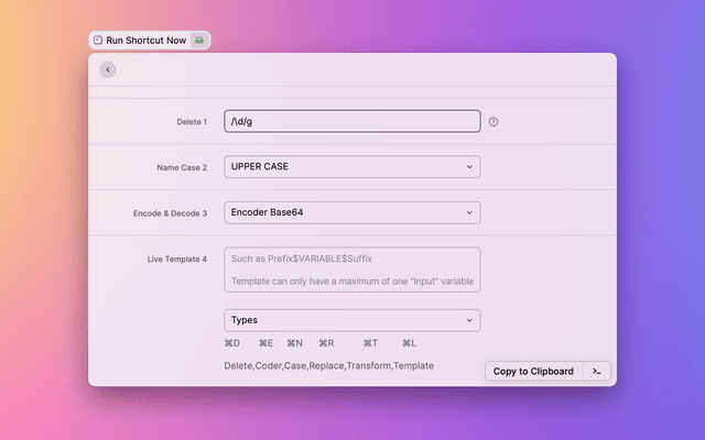 Use Text Shortcuts to handle text from the selection or clipboard