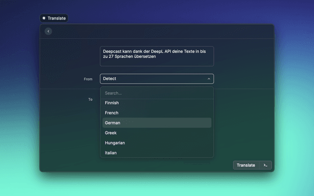 Translate words, or entire sentences, into 26 different languages using DeepL.