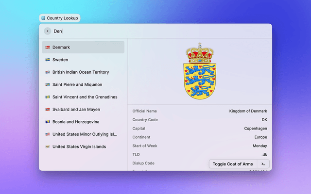Quickly lookup country data by querying restcountries.com